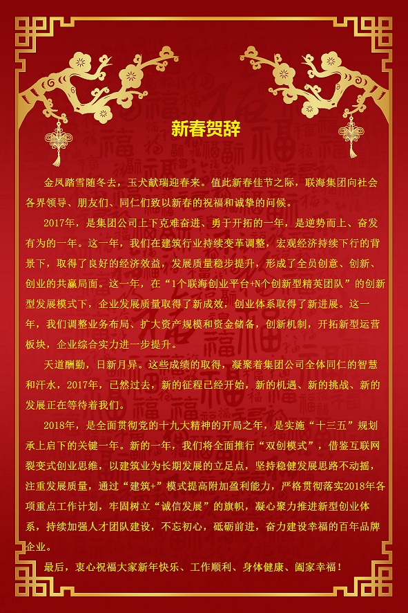 新年新氣象,聯海集團項目管理公司于近日在集團五樓會議室順利召開了2018年新春工作會議,會上積極宣貫了本公司2018年度的各項工作目標,制定了全面實施項目股份制和落實質量第一,安全為先,合同履約為本的長效發展機制...