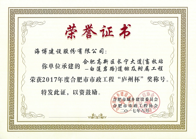 我公司承建的合肥高新區(qū)長寧大道(畜牧站-白蓮巖路)道排及附屬工程,榮獲了2017年度合肥市市政工程“廬州杯”獎。 本工程位于合肥市高新區(qū)南崗科技園中部,新建城市主干道,瀝青混凝土路面。項目開工前...