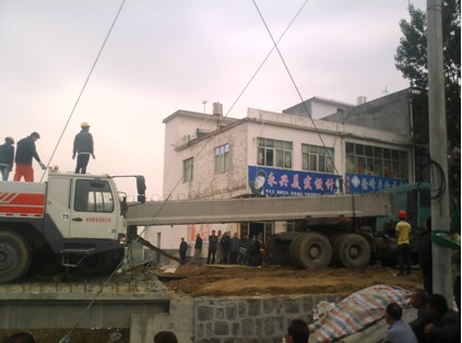 2011年5月22日下午6點30分,定廟橋的最后一片空心板梁順利吊裝到位,這標志著該橋的主體工程已基本完成。