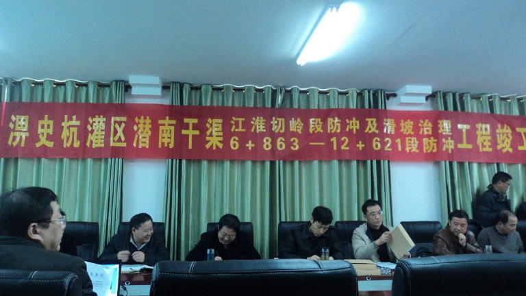 2013年12月17日,淠史杭灌區(qū)潛南干渠(6+863~12+621)段防沖、江淮切嶺段防沖及滑坡治理工程竣工驗收會議在潛南分局磨墩管理所召開。合肥市水務(wù)局、合肥市財政局、合肥市水利工程質(zhì)量監(jiān)督站、安徽省淠史杭灌區(qū)續(xù)建與節(jié)水改造工程建設(shè)管理局、肥西縣財政局、肥西縣水務(wù)局、 潛南分局以及勘探、設(shè)計、監(jiān)理、施工單位參加會議。驗收委員會在通過查看工程建設(shè)現(xiàn)場情況、 觀看影像資料, 聽取建設(shè)、勘測、 設(shè)計、 施工、 監(jiān)理等單位情況匯報后認為,淠史杭灌區(qū)潛南干渠(6+863~12+621)段渠道防沖工程已按批準(zhǔn)的建設(shè)內(nèi)容全部完成, 工程資料齊全,同意通過竣工驗收。