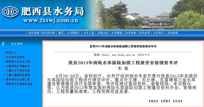 6月26-30日,省財政廳、水利廳組織相關專家開展對肥西縣2013年實施的水庫除險加固工程進行績效評價。我公司承建的1標段工程,因工程質量過硬、工程外觀美觀、工程資料齊全被肥西縣水務局作為肥西縣2013年實施的水庫除險加固工程的代表,迎接了考評組的全面審查。考評組通過查閱資料、查看現場、走訪群眾等,認為該工程建設資料齊全,管理規范,工程質量標準高,工程發揮效益顯著。為肥西縣2013年度實施的病險水庫除險加固工程帶來了榮譽。