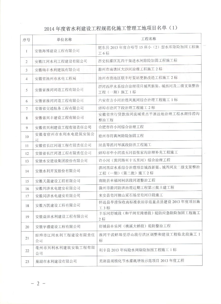 我公司承建的“肥東縣2013年度合裕等15座省級小(二)型水庫除險(xiǎn)加固工程6標(biāo)”獲得 2014年度“安徽省水利建設(shè)工程規(guī)范化管理工地”的榮譽(yù)稱號。
