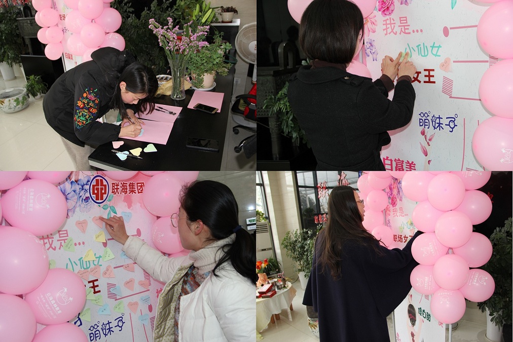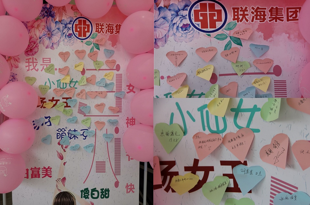 “小驚喜”過后,女神們紛紛在海報(bào)上貼上了可愛的標(biāo)簽及祝福語(yǔ):小仙女,萌妹子,白富美,職場(chǎng)女王,健康生活、快樂工作,聯(lián)海集團(tuán)越來越好,集團(tuán)發(fā)展蒸蒸日上等。一張張愛心標(biāo)簽充分展現(xiàn)了自己的獨(dú)特風(fēng)貌和對(duì)集團(tuán)的美好祝福。