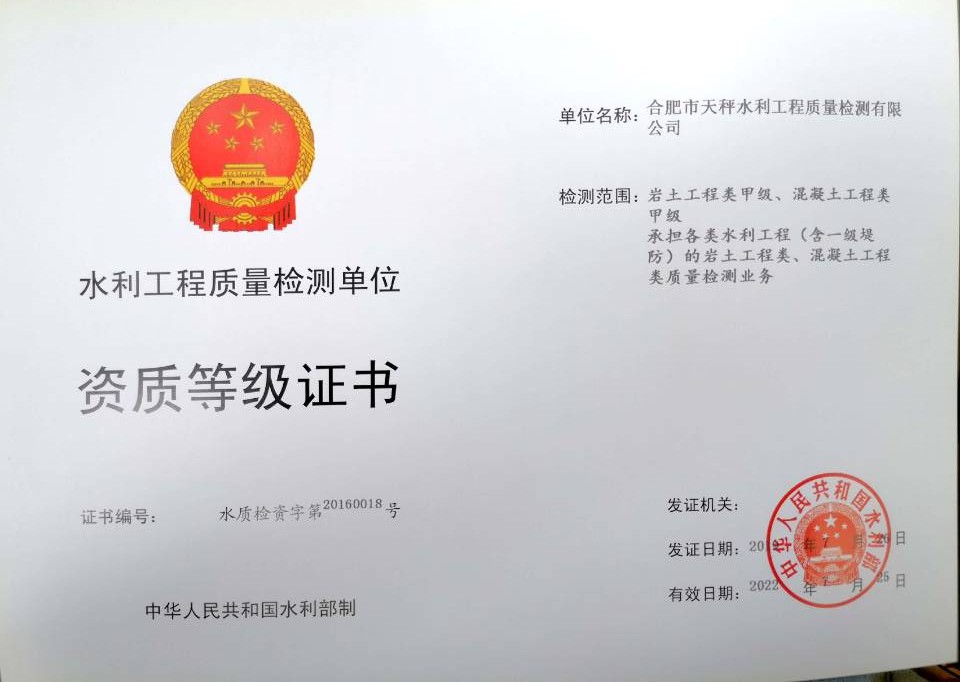 8月6日,水利部公告2019年度甲級水利工程質(zhì)量檢測單位資質(zhì)行政許可,天秤檢測公司申報的巖土類(新申請)、混凝土類(延續(xù)申請)均獲批準,偕同已獲的量測類甲級資質(zhì),“三甲”及第!