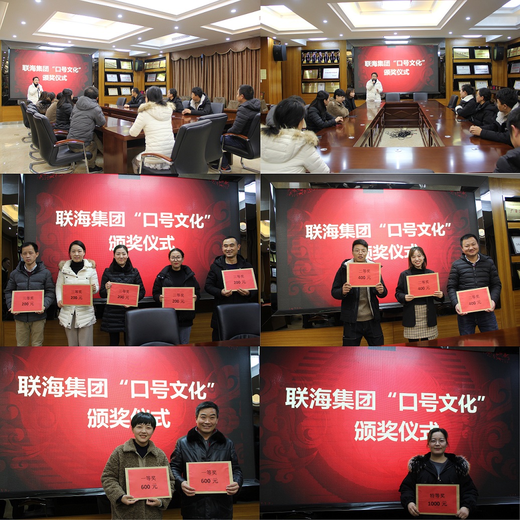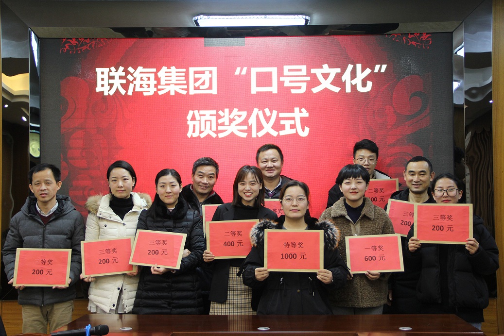 近期,集團(tuán)公司開展了《關(guān)于聯(lián)海集團(tuán)“口號文化”征集大賽的通知》活動,經(jīng)過兩次征選、全員投票的方式,評比出特等獎、一等獎、二等獎、三等獎共計11條獲獎口號。并于2019年12月25日下午17:00由發(fā)展戰(zhàn)略執(zhí)行中心組織了頒獎儀式,對獲獎口號的部門給予表彰和現(xiàn)金獎勵。