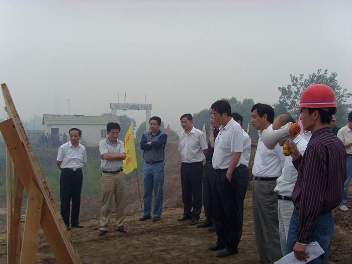 2009年5月23日上午,安徽省“江淮杯”檢查驗收組專家、領導一行冒著綿綿細雨,深入我公司胡灣圩排澇站工程工地施工現場檢查、指導工作。