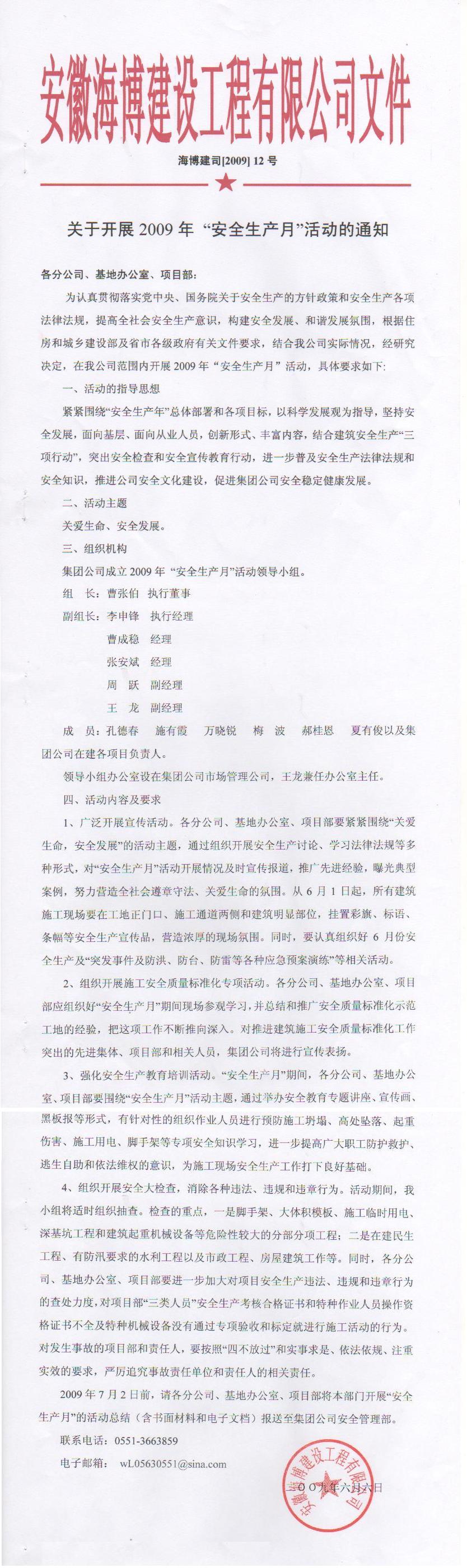 關于開展2009年 “安全生產月”活動的通知
