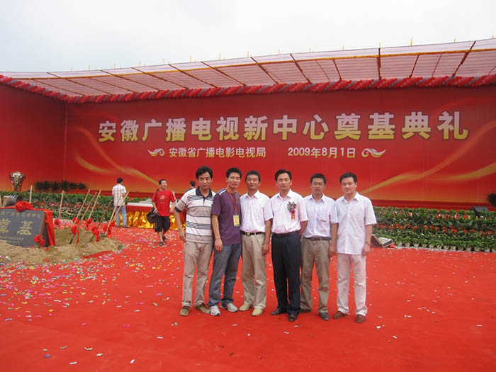8月1日上午9:18分,合肥市政務文化新區美麗的天鵝湖畔,鑼鼓喧天,彩旗招展,我公司承建的安徽“861”行動計劃重大項目、省廣播電視新中心項目奠基開工儀式在此隆重舉行。